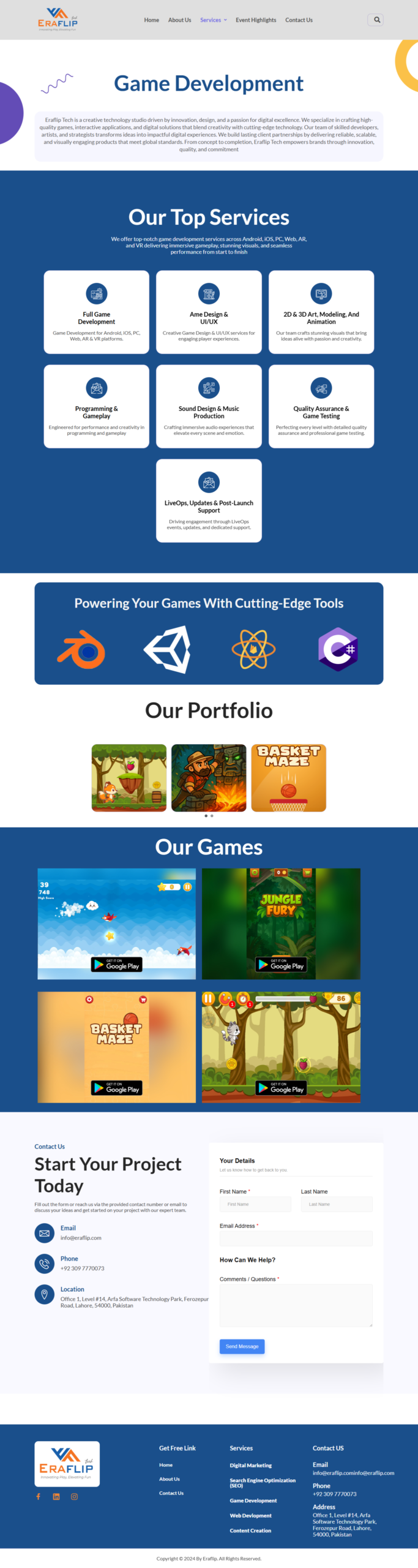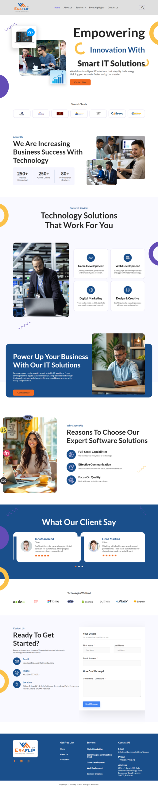 Eraflip is a modern gaming website designed and developed by me to showcase gaming services, events, and community engagement. The website is built with a user-friendly layout, fast performance, and a visually engaging design tailored for the gaming audience.
